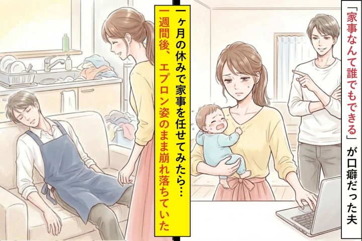 「家事なんて誰でもできる」が口癖だった夫。一ヶ月の休みで家事を任せてみたら…一週間後、正座していた
