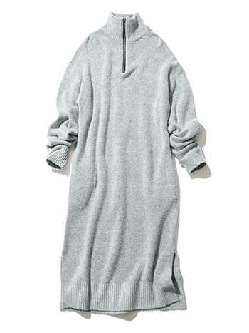 ニットワンピース/ケラウズランブラ(ジャック・オブ・オール・トレーズ プレスルーム) 思わず触れたくなるラフな編み地のニットを、胸元のメタルジップで辛口に引き締め。ジップを上まで閉めればストイックに、開ければポロ襟風にアレンジして抜け感を。見た目の温かさと、都会的なシャープさ。相反する要素を1つにまとめた、バランス感覚に優れた1枚。