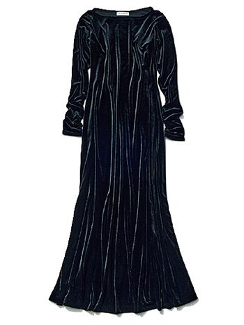 黒ベロアワンピース/THE SHINZONE(Shinzone ルミネ新宿店) スタイルが自然とキレイに見える、上半身はスリムでスカート部分はわずかに広がるシルエット。装飾はベロアの質感とすそのニュアンスのみの潔さ。ちょっとしたパーティなど、フォーマルな場面でも頼れるミニマルだけど適度な存在感も残せる黒。