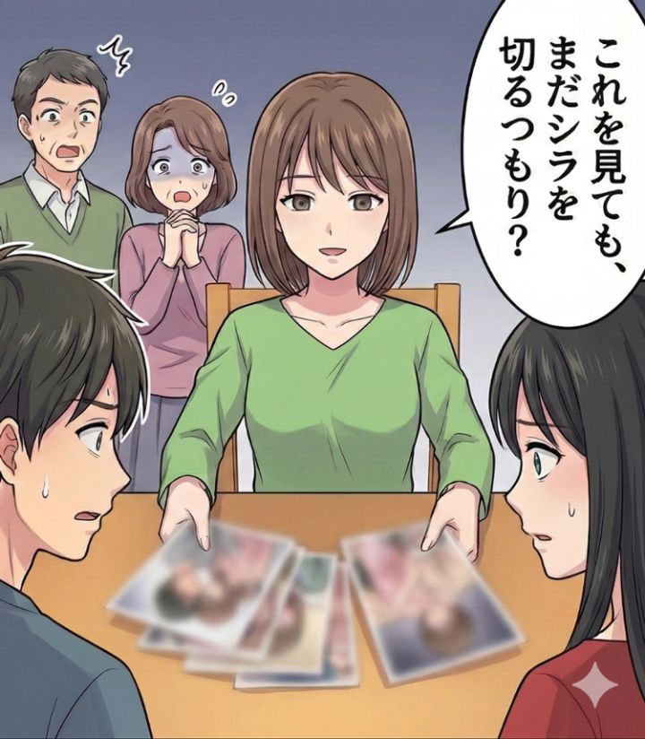証拠を手に入れてから数週間後、再び実家に彼を招待しました。そして、私は「2人とも、いつまで隠してるつもり?」と切り出します。