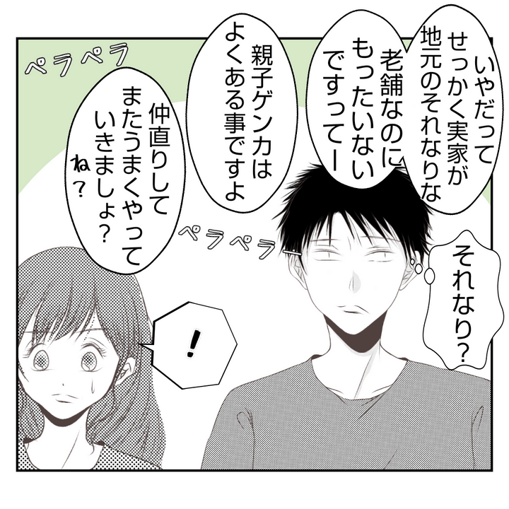 夫婦でかぐらの味を継ぐ新しい店を作ろう!と張り切る2人。良い物件も見つかり喜んだのも束の間、創業資金の融資が難しいと言われてしまう。それどころか、銀行マンはなぜか優太の父の話題を振ってきて、あおばたち夫婦の独立話に水を差す。