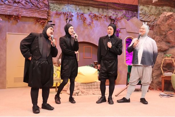 働くことをやめ、堕落した生活を送るアリのアリタを有田哲平が演じるほか、真面目で働き者のアリタの幼なじみ・アリツグをSnow Manの深澤辰哉、不労を説くカルト的指導者・アリババを空気階段の鈴木もぐら、そして謎多きフリーランス・アリーランスをロングコートダディの兎が演じる。収録にあわせて行われた囲み取材には、出演者4人が登壇した。