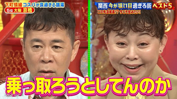 なお、Iさんが愛し過ぎる白玉温泉は、3月4日夜7時から放送されたバラエティ番組『なるみ・岡村の過ぎるTV』(ABCテレビ)で紹介された。3月4日放送回は、いつも月曜夜OAの『なるみ・岡村の過ぎるTV』のゴールデンSP版! “関西この先急成長!? 今が狙い目過ぎる街ベスト5”が発表され、白玉温泉がある京橋は5位にランクインした。