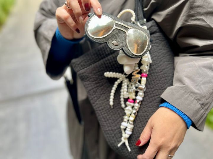 韓国の伝統的なキルティング生地〈ヌビ〉で作られた「pionunnal(ピオヌンナル)」のアイコン、ヌビバッグ。シンプルなコットンバッグに、茶目っけたっぷりのチャームがたっぷり!中でもお気に入りは、ドイツ発の人気ブランド「ANY DI(アニー ディー)」のメガネホルダー。「サングラスがすぐに取り出せて、バッグの中で迷子にならないから、とても重宝しています」。