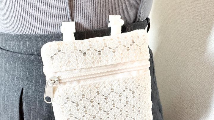 かわいいレースデザインがコーデのポイントにもなる「移動ポケット 縦型」