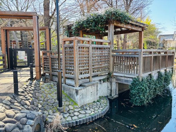また、公園入り口付近には小川が流れており、水深が浅いので水遊びも楽しめそうです。芝生で自転車の練習をする子供の姿も見られました。