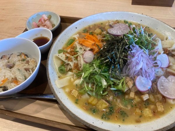 季節のお野菜をふんだんに使用した、まぜ麺が食べられるお店です。