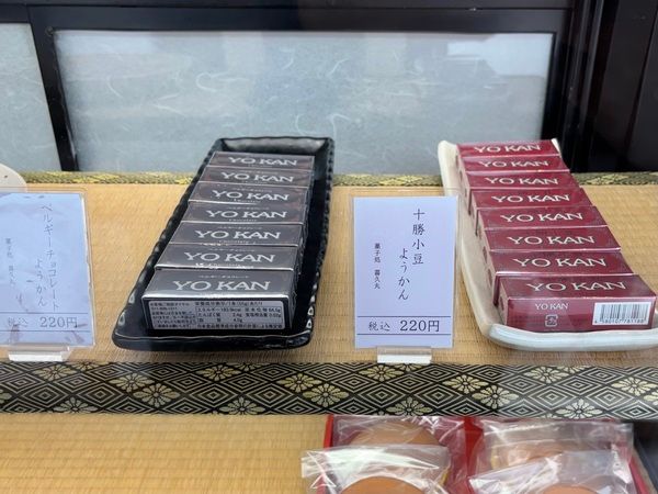 上生菓子のお隣には手土産にぴったりなどら焼き&羊羹が整列!羊羹は十勝小豆と珍しいチョコレート味の2種類がありました。