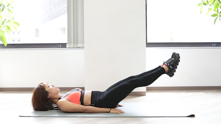 抱えている膝を胸につけているとき、もう片足の膝裏が床から離れてしまう場合、腸腰筋がうまく使えていない、または硬い証拠です。