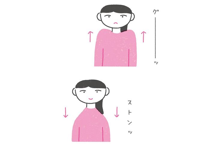 ☑ 肩をすくめてグッと力を入れたあと、ふ〜っと脱力する