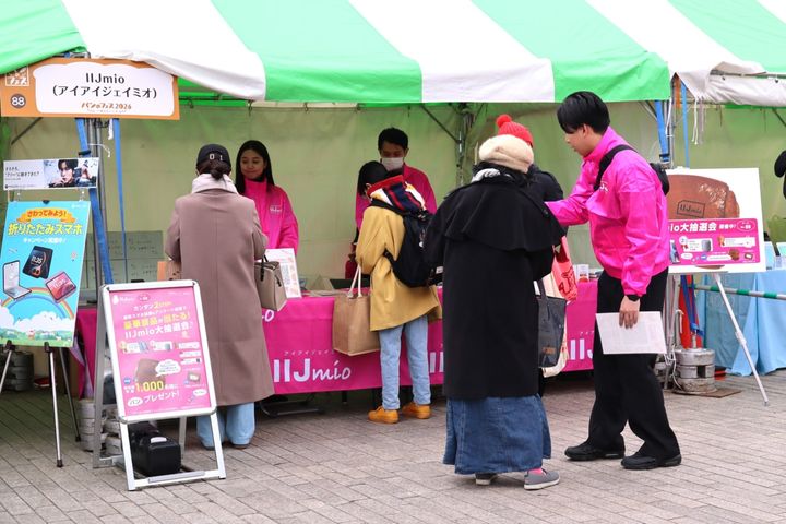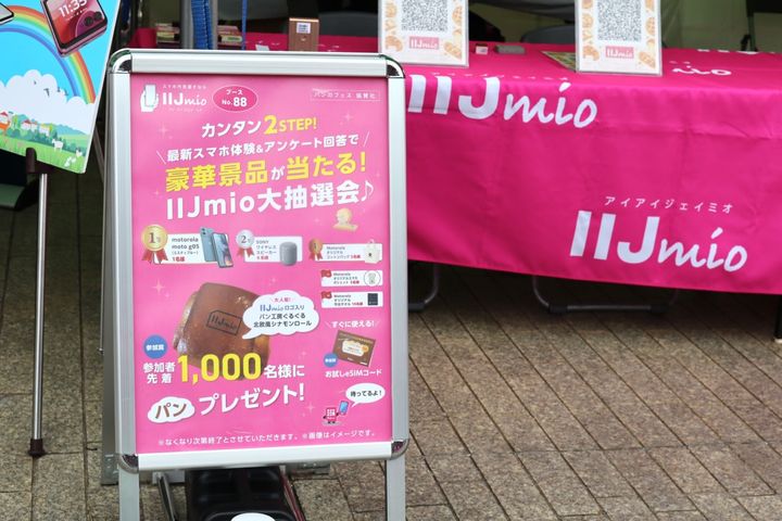 中には最新の携帯端末など豪華景品が当たる抽選会も! モバイルサービス「IIJmio」のブースでは、ハズレなしの抽選会やオリジナルのシナモンパンを先着1,000名の方にプレゼントするイベントが行われており、にぎわいを見せていました。