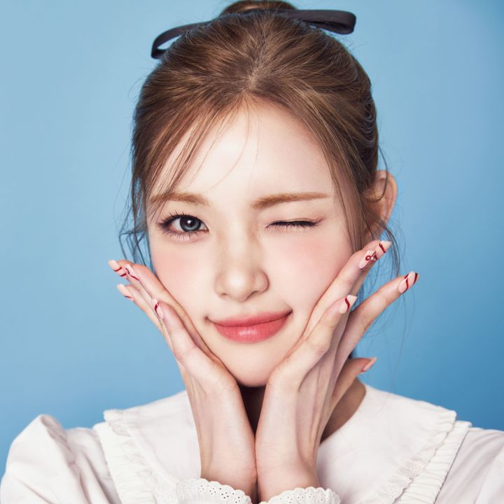 少女らしさ満載のツインテールヘアがお似合いのイェオン。ややくすみがかったマットなレッドチークを頬から鼻先にかけてふんわりとのせ、おてんばなムードをプラス。