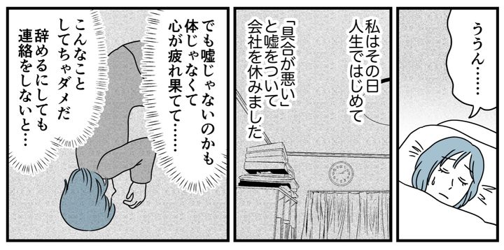 このまま休みつづけていたらまわりの人にも迷惑がかかるし、社長からは話があると言われたし、なんとか頑張って出社すると……。