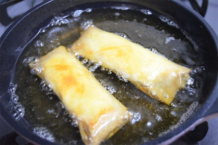 5. フライパンに揚げ油を入れ170℃に熱したら、4を入れ、皮が香ばしくパリッとするまで中火で7~8分揚げる。