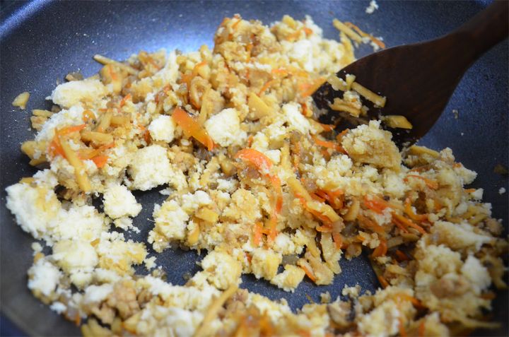 しいたけ、にんじん、茹でたけのこを千切りにしているので、おからとの馴染みもイイ!