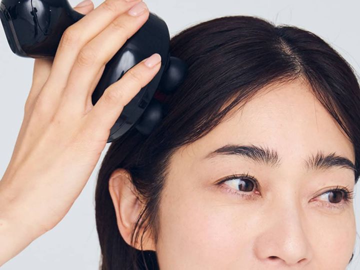 頭皮、特に側頭筋が硬いと、たるみの原因に。こめかみから側頭部をほぐすことで、即効的に目がぱっちりと開く実感が得られます。インバスでもできるマッサージ機器なら習慣化しやすい。人気のヘッドスパシリーズにイオン導入・導出機能を搭載。