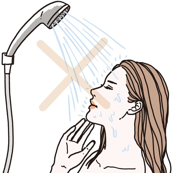 すすぐときはぬるま湯が基本。熱すぎるお湯や、シャワーを直接顔に当てることも肌の刺激に。ぬるま湯を手ですくって優しくすすいで。