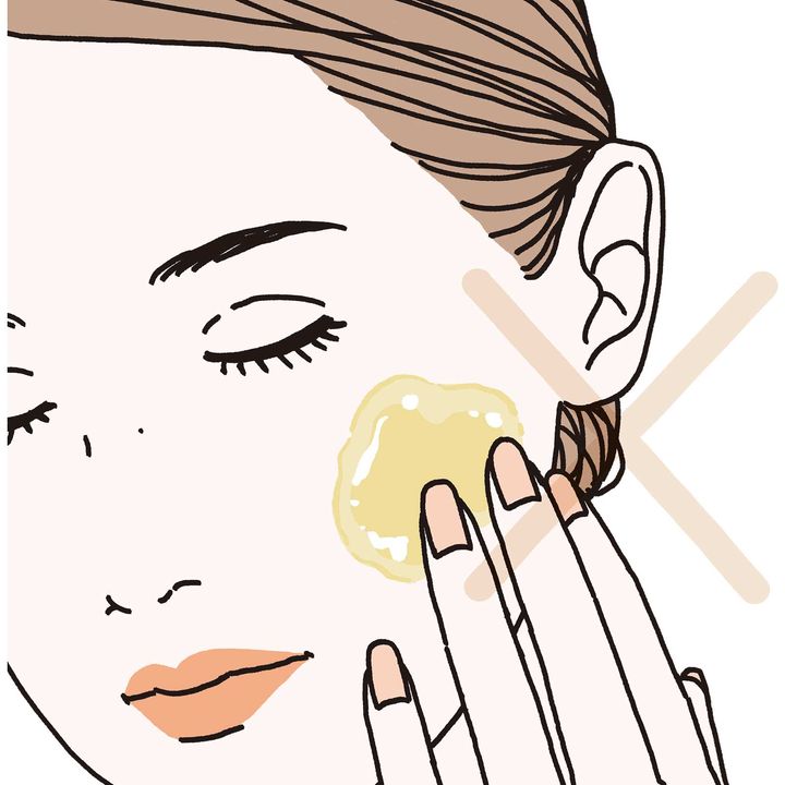 肌に当たる面積が狭いほど圧がかかり刺激になります。手のひら全体を使い、やさしく滑らせるように馴染ませて。使用量も多めを意識。