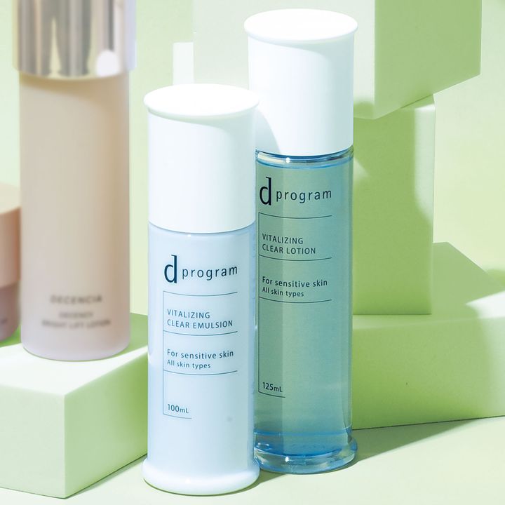 美肌菌に着目。肌環境を整えて美白ケアも。m-トラネキサム酸配合。d プログラム バイタライジング&クリア ローション EX [医薬部外品]125ml ¥4,180、同 エマルジョン EX [医薬部外品]125ml ¥4,180〈ともに編集部調べ〉()