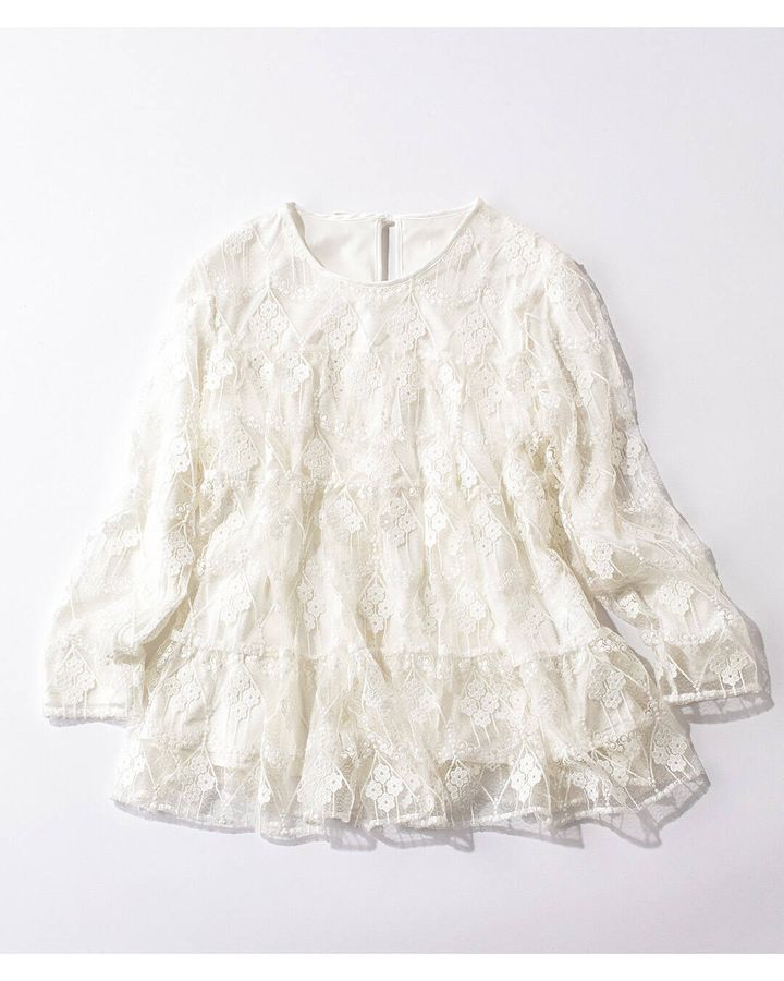 繊細なレースを贅沢に使用した、ロマンティックなティアードデザイン。大人にも着やすい程よい透け感で、歩いた時のレースの揺らぎが女性らしく、華やかさを引き立てます。手洗い可能。
