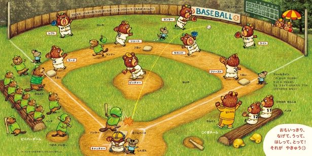 子どもとキャッチボールや野球観戦をしながらルールを説明するのもいいですが、『やきゅうのずかん』(牛窪良太/白泉社)があれば、可愛らしいイラストとともに野球の知識を子どもに分かりやすく教えることができそうです。