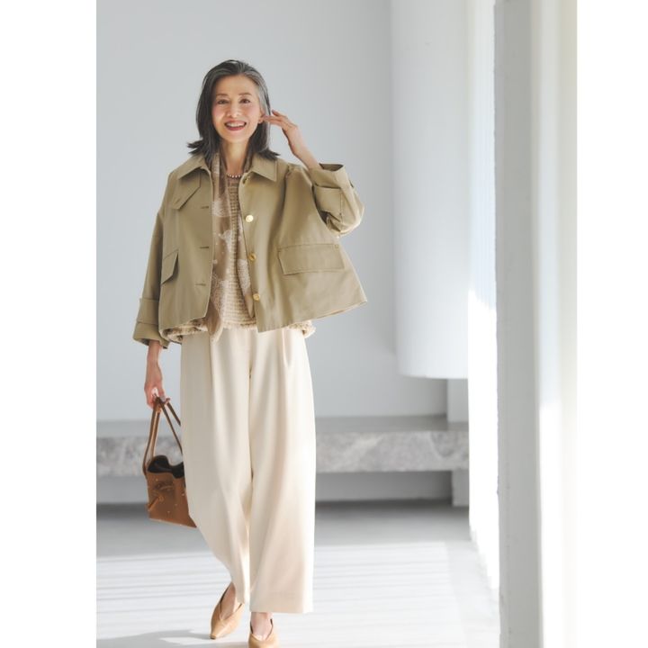 【60代ファッション】季節の変わり目に役立つ、大人のコーディネートのコツとは? ジャケット以上コート未満なアウターや、おでかけスエットが重宝!