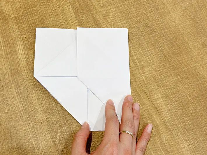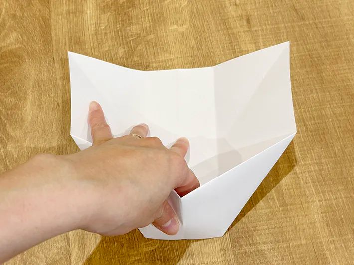 4.左下と右下の角を中央の横線に向かって三角に折る