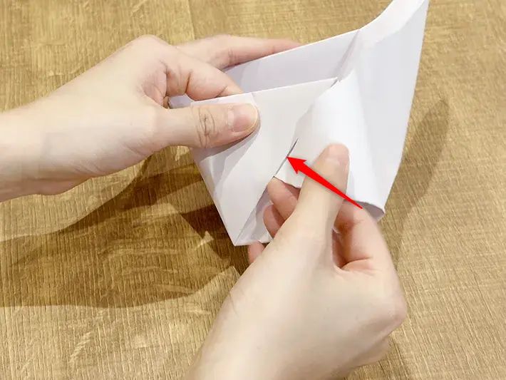 10.後方をつまむように三角に折る