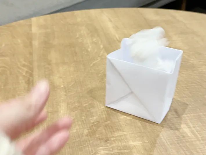 テーブルやデスク周りに置いておけば、その場で出たティッシュのゴミ箱を入れることができます。