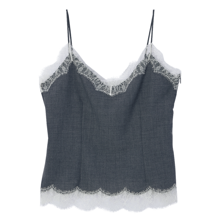 ジャケットを羽織ったり、Tシャツに重ねたり、デイリースタイルに取り入れて。キャミソール¥119,900(マディソンブルー)