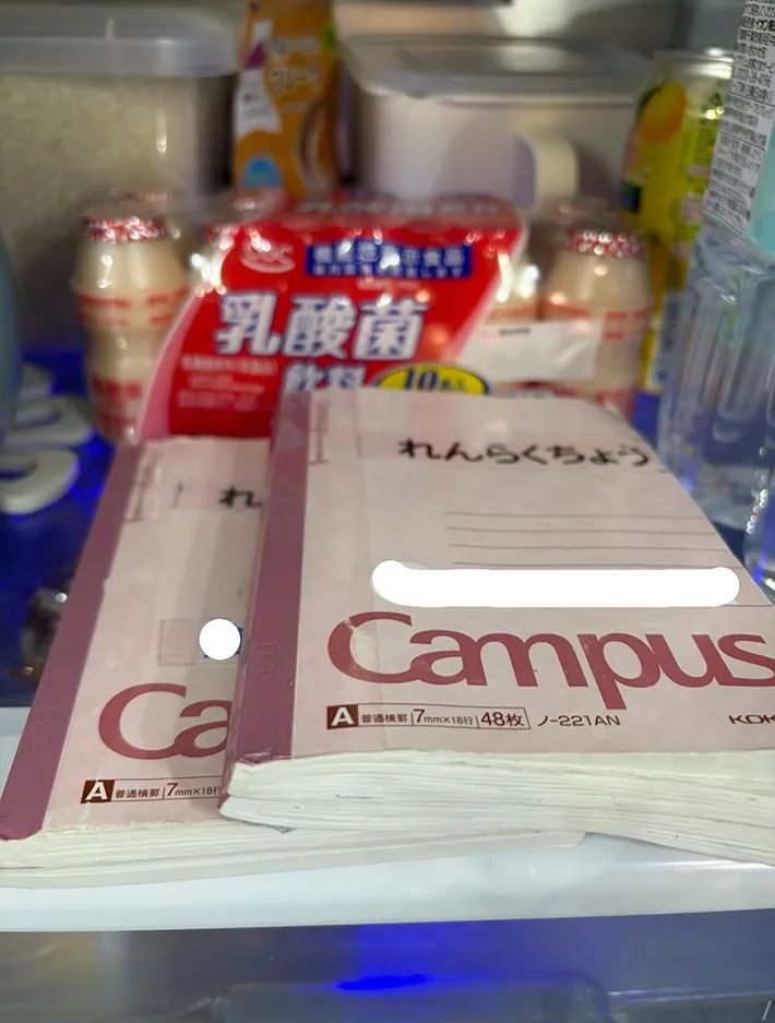 投稿者さんは、飲み物を冷やそうと扉を開けた瞬間に「丁寧に冷やされている連絡帳と目が合いました」と、当時の状況を説明。