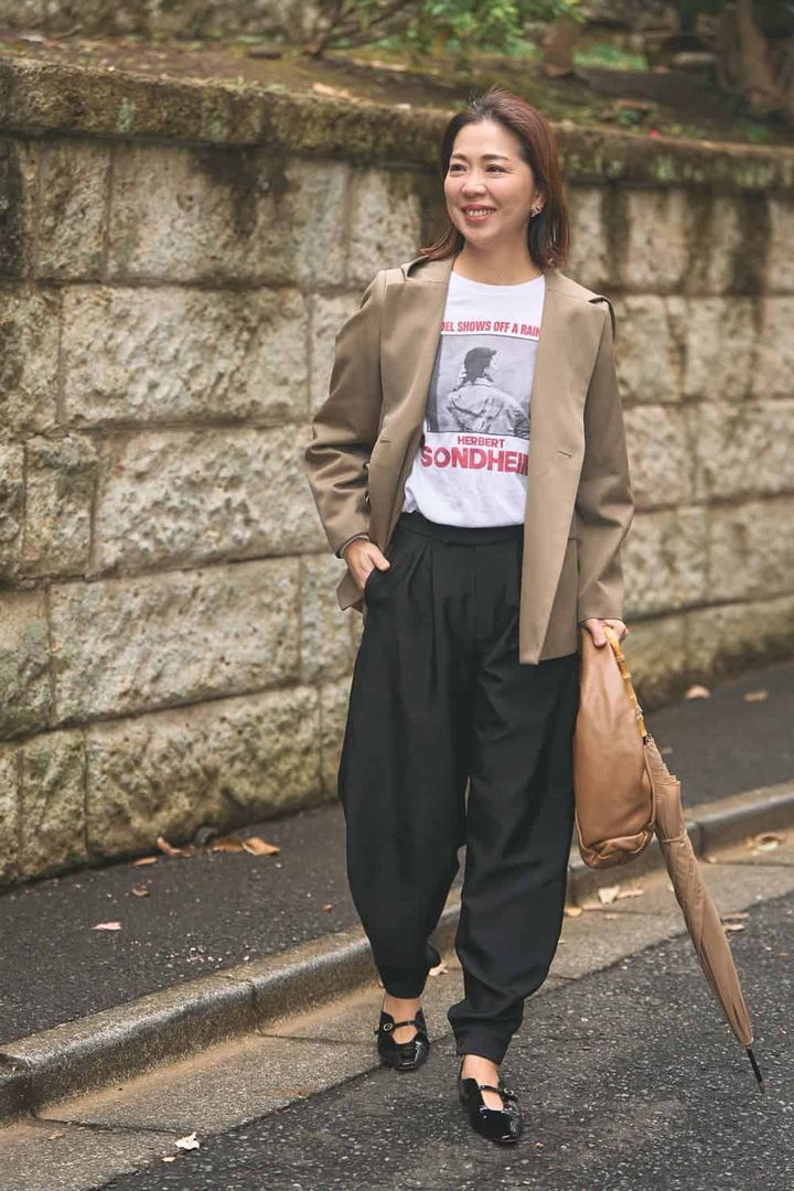 <体感気温が読めない梅雨時期>…雨の日もフッ軽な黒パンツコーデをカジュアル仕上げ
