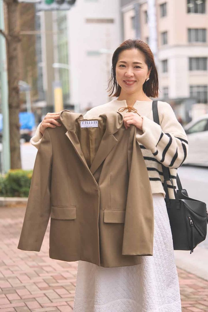フード付きデザインに惹かれたジャケットはサードマガジンのもの。普段のきれいめコーデに合わせたいマニッシュな雰囲気と、フード付きなのでカジュアルにも振れるのが購入の決め手でした!