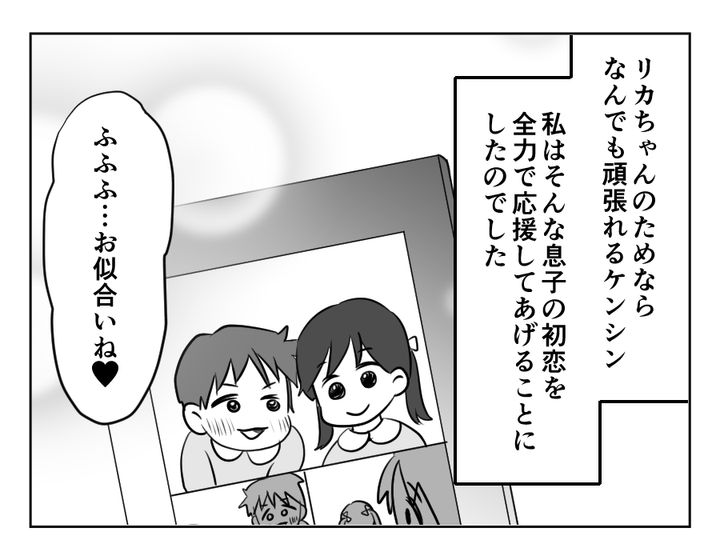 私(エツコ)は、夫とひとり息子のケンシンとの3人家族。夫は単身赴任中です。ケンシンは私の宝物です。しかしケンシンは、こだわりは強いし癇癪も多い子。私はケンシンと一緒にいる日々を「辛い」と思うようになりました。そんななか、ケンシンに初恋が訪れたのです。お相手の「リカちゃん」は明るくてみんなの人気者。リカちゃんと出会えたことで、ケンシンにすさまじい成長が見られたのです! 私は息子の初恋を目いっぱい応援することにしましたが……。