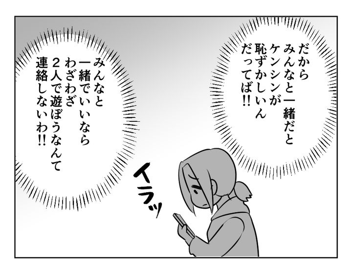 わーー! エツコさん、どんどん暴走していっていますよ!!! 自分からの申し出に対してやんわりと別の提案をされたときイラっときてしまっている時点で、「自分の子どもが良ければそれでいい」思考になっていることに気が付いてください! ケンシンくんが恥ずかしいのかもしれないけれど、それはリカちゃんには関係ない話だし、自分の子どもの気持ちは親がなんとか抑えてあげないと……。