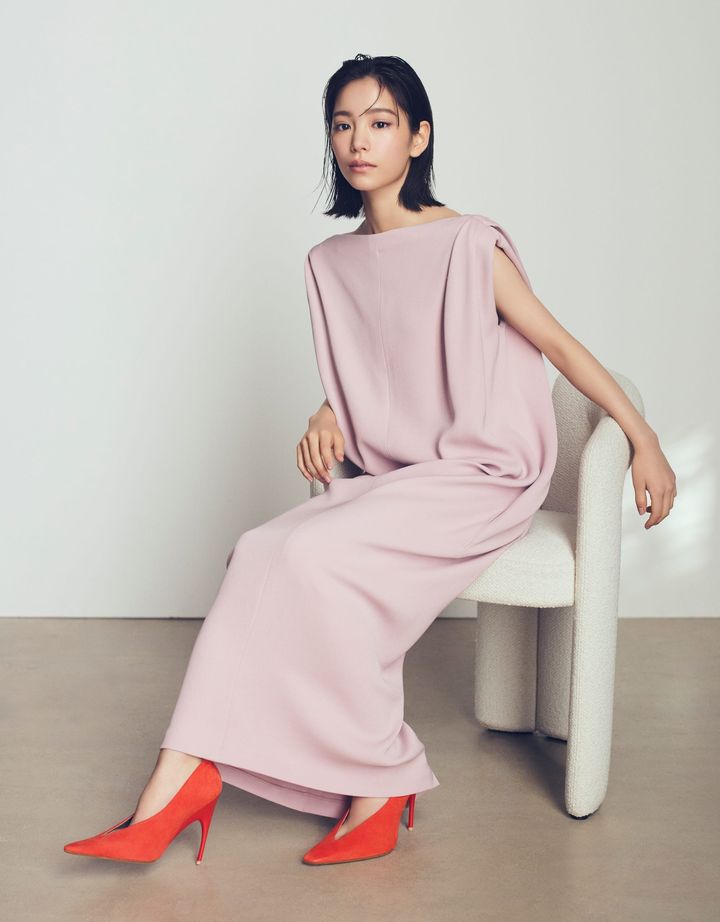 今季注目カラーのピンクをサックドレスで纏って。布と身体が織りなす唯一無二のシルエットは、クリストバル・バレンシアガの革新を再構築したもの。空気を含んだような軽やかさが春夏の訪れを感じさせます。