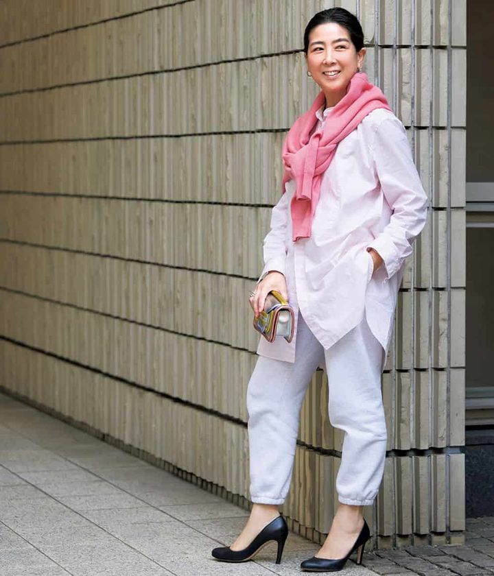 色味はほんのり甘いけれど、形がストイックで直線的、切りっぱなしのディテールなどメンズライクなところが好み。ふわっと気分を上げたい日やスモーキーな天気の日など、色のチカラが欲しい時に四季を問わず頼りにしている1枚です。