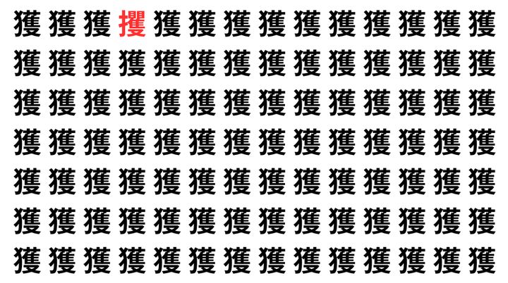 たくさんの「獲」の中に、よく似た別の漢字が1文字だけ隠れています。