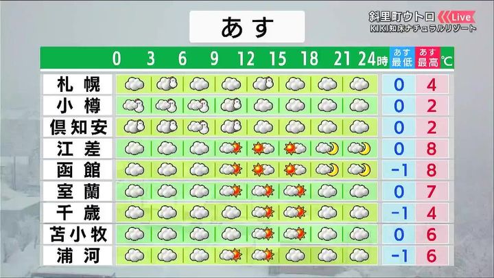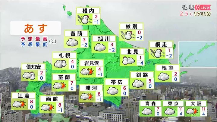 ・あすの札幌の朝昼晩の天気
