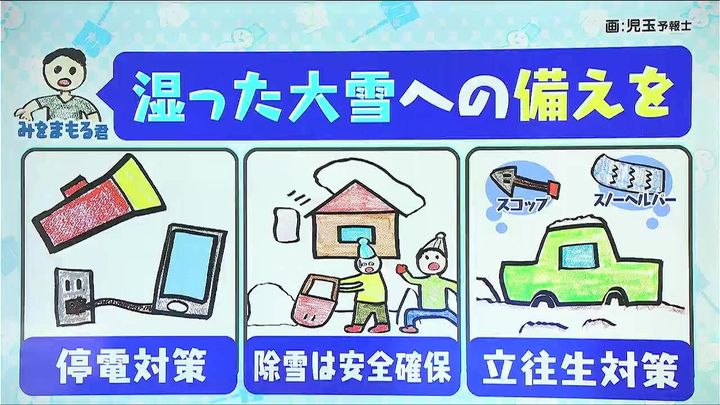 オホーツク海側では湿った大雪への備えをしましょう。着雪による停電に備えて懐中電灯の準備やスマートフォンの充電をしておきましょう。あす13日(金)にかけて何度か雪かきが必要になります。落雪の危険性も高まるため、周りの安全を確保し、複数の人で作業して下さい。ザクザク路面による車の立往生に備え、スコップやスノーヘルパーを積んでおきましょう。
