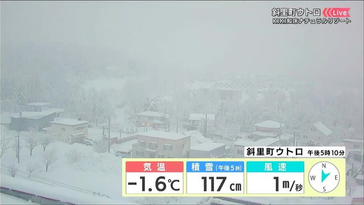 ウトロの積雪は今シーズン最大となる117センチです。あす13日(金)にかけてさらに積雪が増えるでしょう。