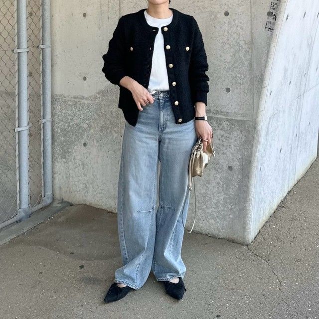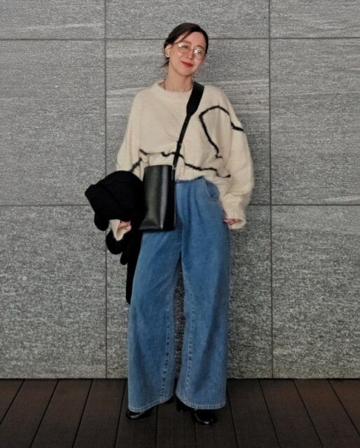 3月は気温の変化が激しく、春とはいえニットやアウターが手放せません。そこで40代50代におすすめなのが「ワイドデニムパンツ」。爽やかさがあり、冬モノに合わせるだけで季節感がグンとアップ。