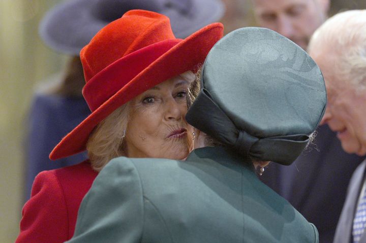 兄チャールズ国王へのカーテシーにはじまり、その後も兄妹らしい仲の良い振る舞いが見られる一方、カミラ王妃へのカーテシーは当然ありません。