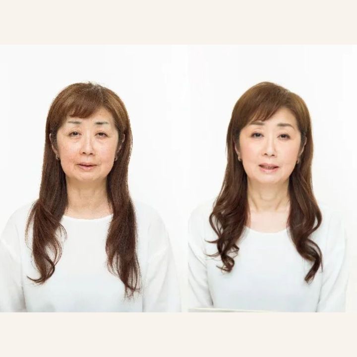 「頰のお肉が下がり、顔が四角い気がするのが悩み」といっていた渡邉さん。頰の下に影ができ、せっかくの小顔も少し疲れていましたが、頰が上がり、血色がよくなったことでクマも薄くなって健康的な印象に!顔のお疲れ感も軽減しました。