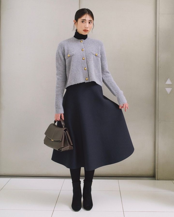 3月13日(金)、ジャケットじゃない気分の日は、厚手でかっちりとしたカーディガンが1枚あると便利。品の良さと動きやすさを両立してくれる、頼れるアイテムです。絶妙なクロップド丈で、パンツはもちろんフレアスカートとも好相性。凹凸感のあるブークレ素材なら、ミニマルなモノトーンコーデにもさりげない表情と華やかさをプラスしてくれます。
