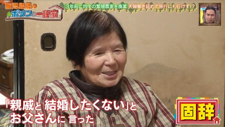 妻は隣の集落の出身。農家の8人兄妹の7番目で、病弱な母に代わり高校には行かずに家事を担った。20歳で、7歳年上の従兄妹であるご主人に嫁いだ。「親戚と結婚したくない」と断ったものの、親に逆らえず結婚。結婚式も挙げず、新婚旅行もなし。「牛がいたから旅行にも行ったことがない」そう。「子供はいなかった」けれど「2人で一生暮らそうと思って。苦労した分もあったけど、2人でなんとかやってきた」というご夫婦の夢は、温泉旅行。結婚して63年。牛の世話に追われ、1度も叶わなかった温泉旅行。桜島を眺めながらのんびり浸かる日が待ち遠しい。