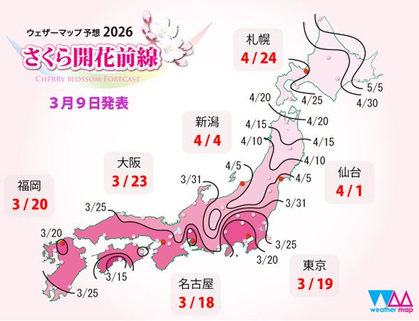 2026年の桜前線を気象予報士が予想!暖春の影響で平年よりも早めの開花?