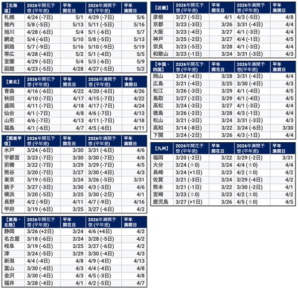 このように「冬の適切な冷え込み」と「その後の急激な気温上昇」の流れが、2026年の早めの開花予想につながっています。