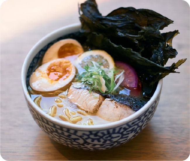 また、福井・小浜の食材を使った料理やお酒が楽しめるイートインコーナーもスタンバイ。小浜の食材を90%以上使用した地産地消レストラン「和久里のごはんや おくどさん」では、福井のソウルフードを「おくどさん」流にアレンジした「ソースカツ丼」(880円)や、小浜で獲れた鯛やブリのアラ、未利用魚を使った魚介白湯スープの「魚介白湯麺」(写真上・1,078円)などが食べられます。