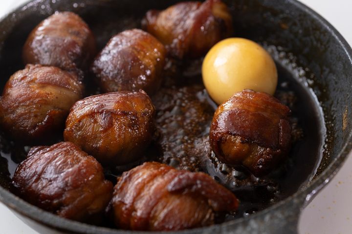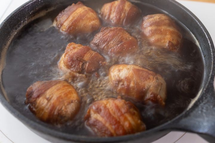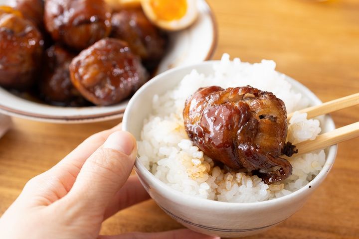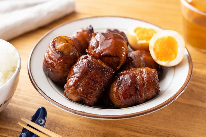 手頃な豚こま肉をぎゅっと丸めて、豚バラ肉で巻くのがポイント。ブロック肉のような食べごたえを出しつつ、下茹で不要で味もしみ込みやすいので、調理ハードルがぐっと下がりました。